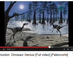 Nightlife: Troodon stalking Cretaceous Canadian landscape, viewed through "night vision" lens