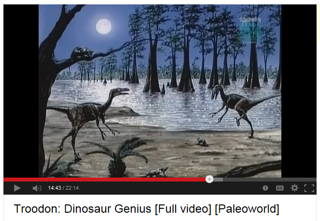 Nightlife: Troodon stalking Cretaceous Canadian landscape, viewed through "night vision" lens